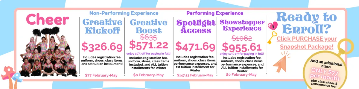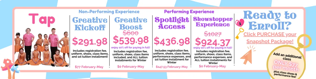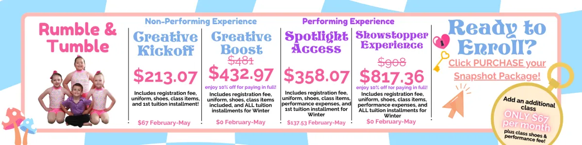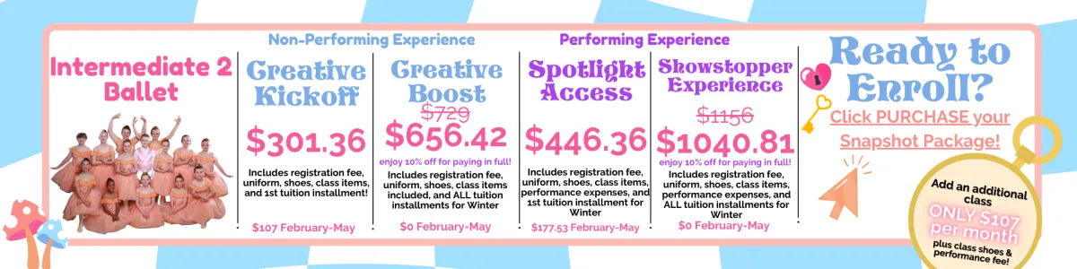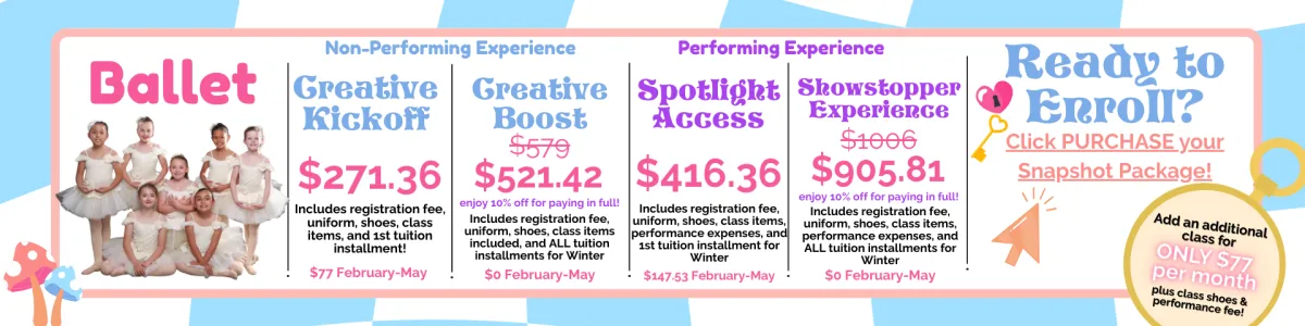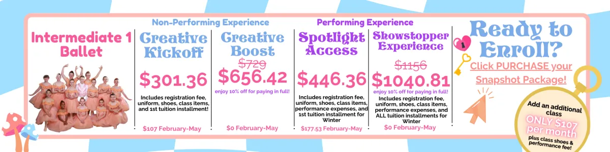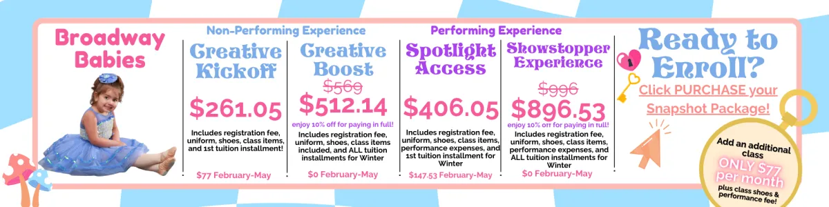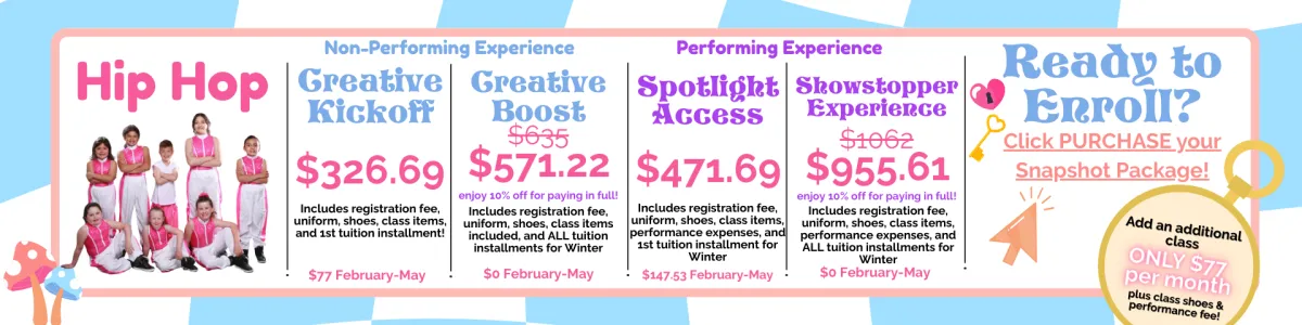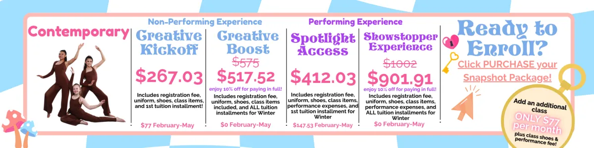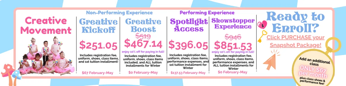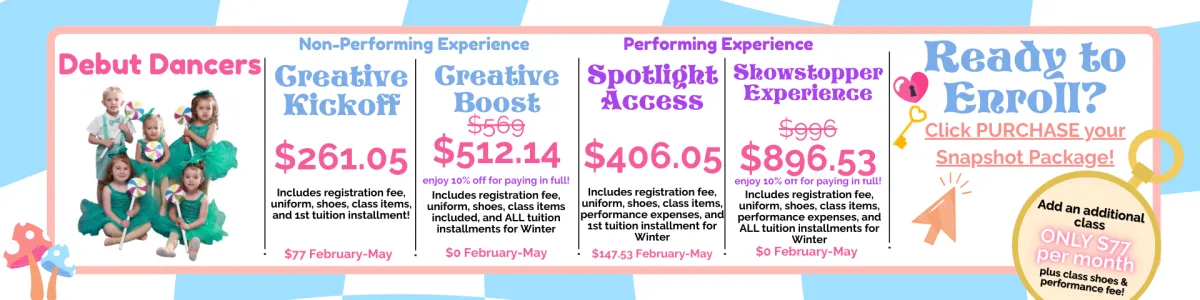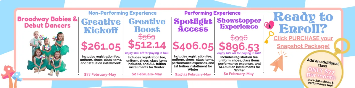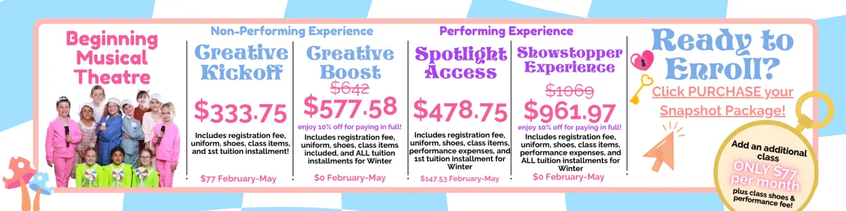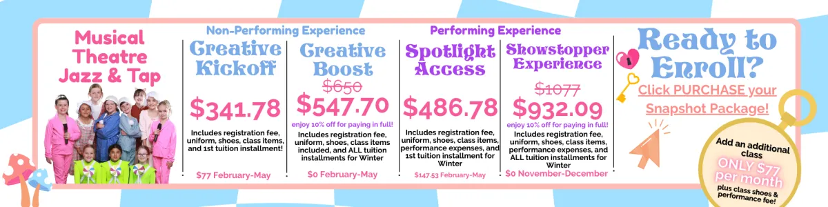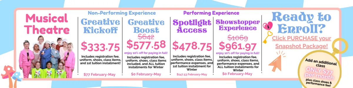 Snapshot enrollment is now open! Enjoy a low commitment, next level dance and theatre education!