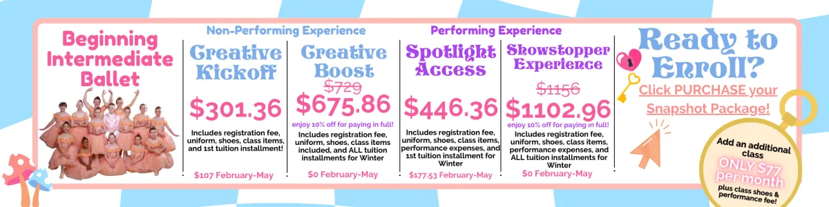These costs can include classes, Nutcracker participation, costume rental, Nutcracker shirt, uniform shoes, a class pack, uniform leotard/shirt, and uniform bottoms.